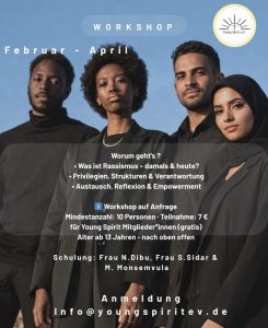 Bleibe auf dem Laufenden und erhalte regelmäßig Informationen zu unseren Veranstaltungen, Projekten und aktuellen Aktivitäten von Young Spirit e.V.