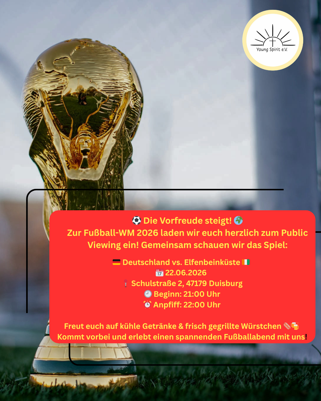 Der Förderverein Young Spirit lädt euch herzlich zum Public Viewing des zweiten Gruppenspiels ein: